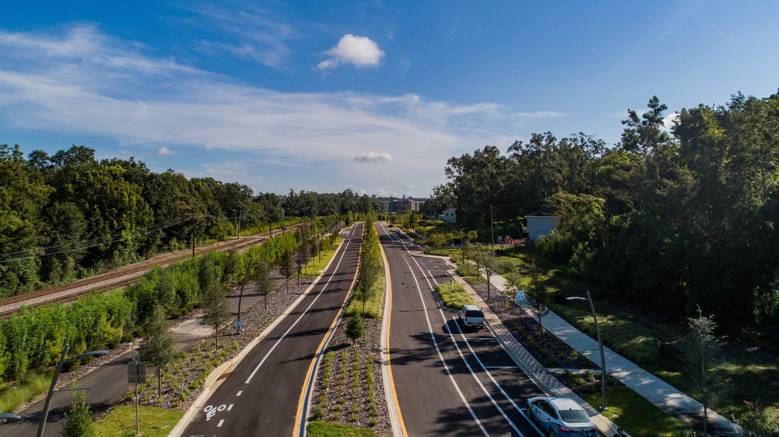 The project extends FAMU Way from South Martin Luther King Jr. Boulevard to North Lake Bradford Road, transforming a segment of existing roadway and constructing a new roadway to complete the desired connectivity. Four attractive and functional roundabouts, wide sidewalks, a multiuse trail connecting to the St. Marks Trail, a community gathering place at Lake Anita, a children’s playground, landscaping and much more were included in the design this transportation corridor.